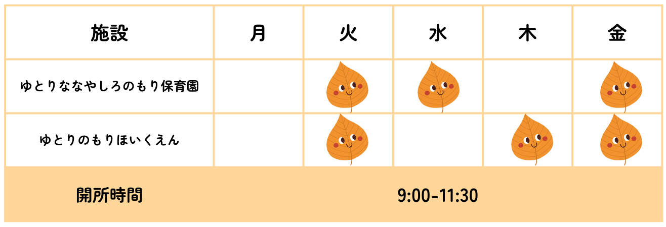 ※ 在園児数によっては、受け入れが難しい場合もあります。ご了承ください。